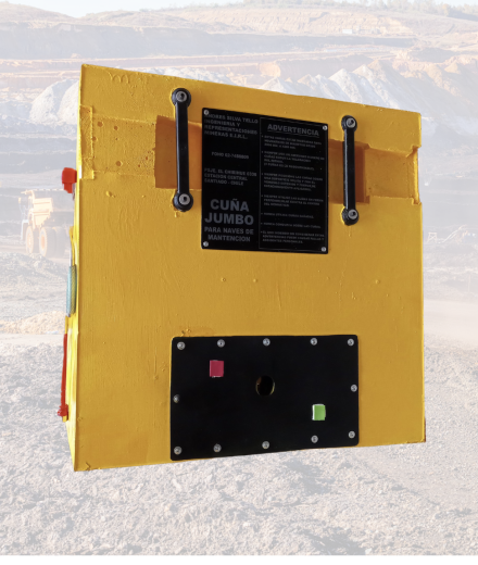 Herramientas diseñadas específicamente para proporcionar estabilidad y seguridad al trabajar con maquinaria pesada dentro de naves de mantención en faenas mineras. Estas cuñas cumplen un papel crucial al evitar movimientos no deseados de los equipos durante las tareas de mantenimiento.